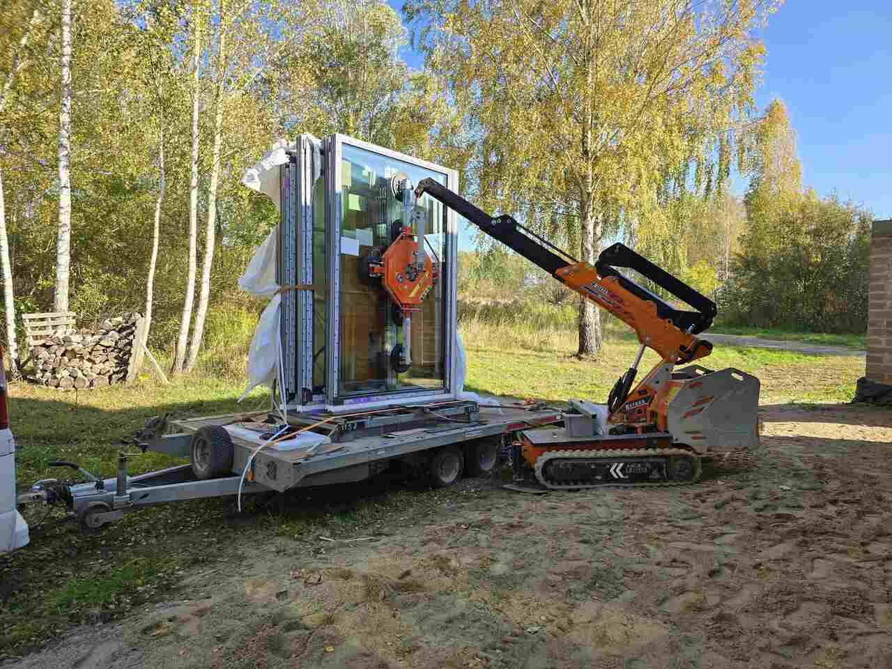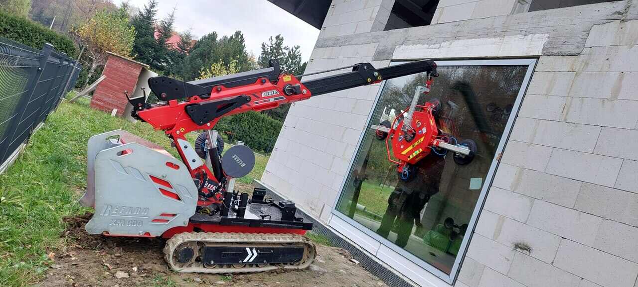 | Przyssawka z głowicą hydrauliczną | Przyssawka z głowicą hydrauliczną sterowana z pilota Możliwość demontażu przyssawki i instalacji haka. Głowica montowana na końcu wysuwu hydraulicznego co daje nam zasięg 5,6 m w pionie |